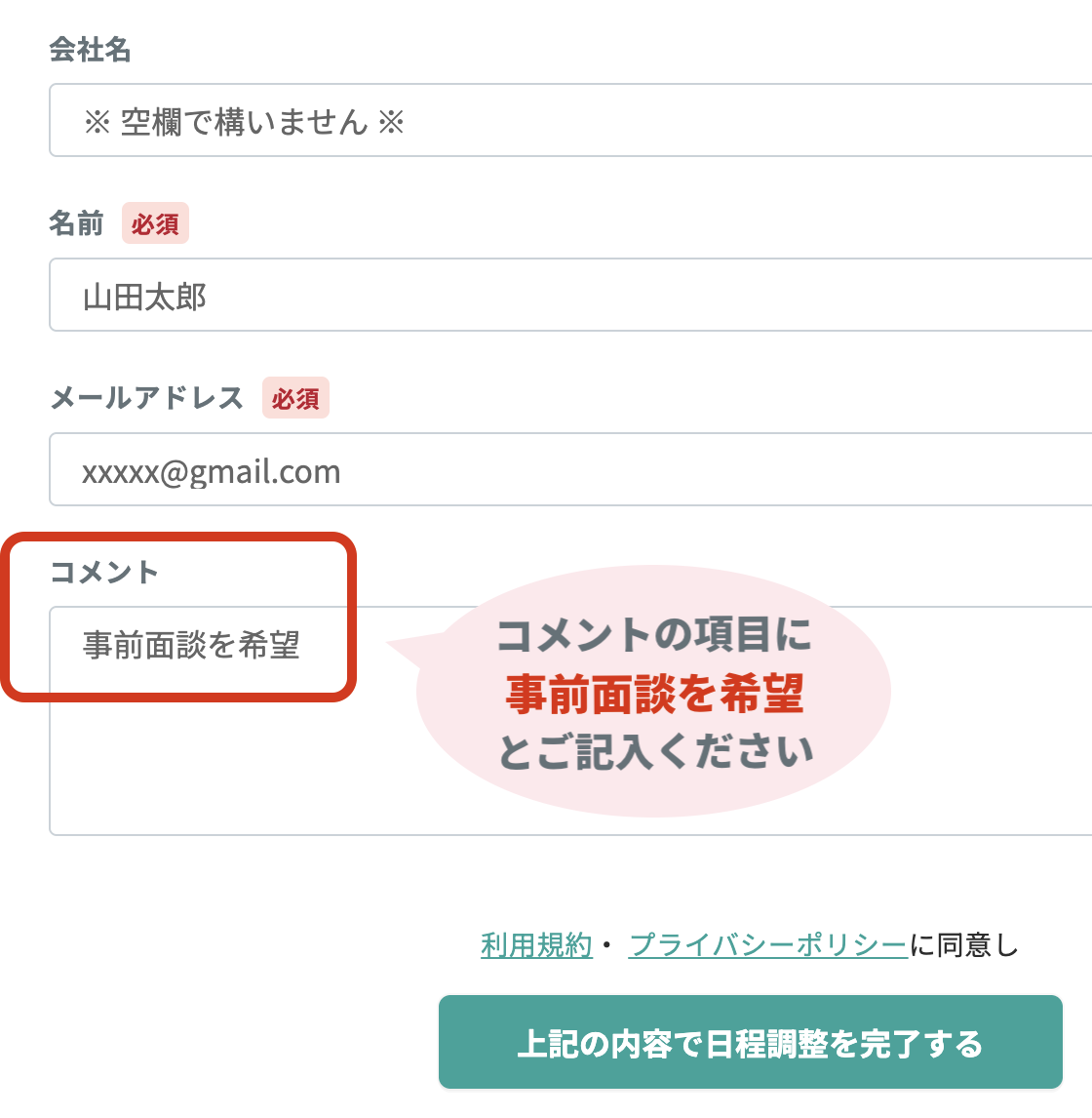 個別面談の日程を予約する